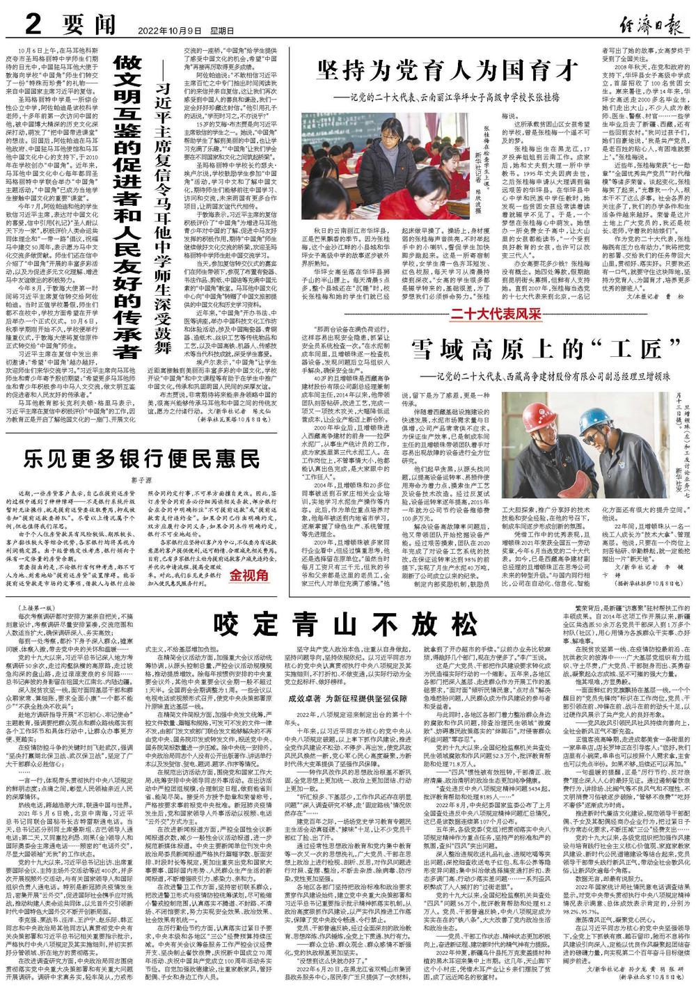 作为党的二十大代表,张桂梅既有压力也有动力,“我将把党的部署、交给我们的任务带回大山里,贯彻好、落实好。只要我还有一口气,就要守住这块阵地,坚持为党育人、为国育才,培养更多优秀的接班人”。