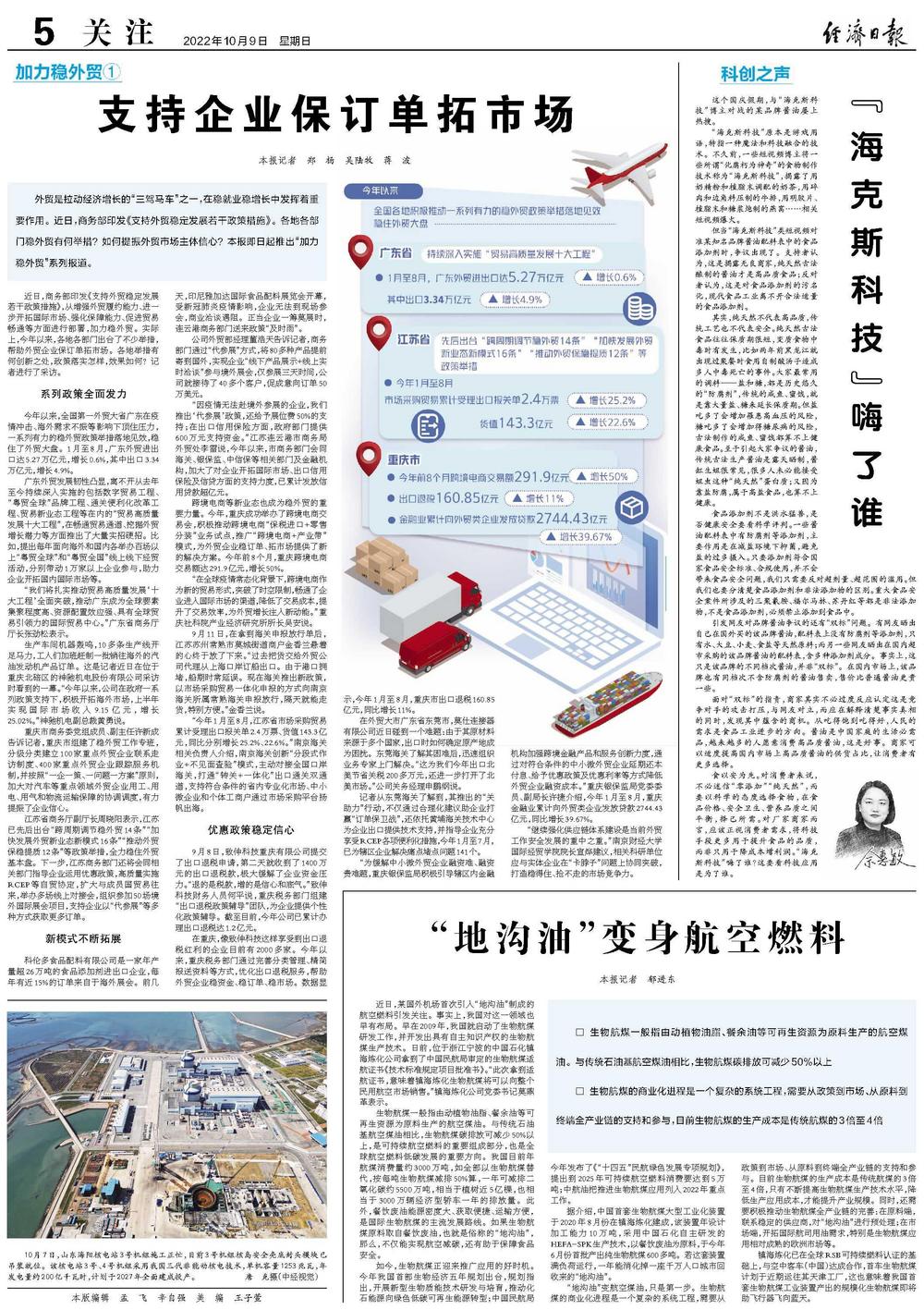 如今,生物航煤正迎来推广应用的好时机。今年我国首部生物经济五年规划出台,规划指出,开展新型生物质能技术研发与培育,推动化石能源向绿色低碳可再生能源转型;中国民航局今年发布了《“十四五”民航绿色发展专项规划》,提出到2025年可持续航空燃料消费要达到5万吨;中航油把推进生物航煤应用列入2022年重点工作。
