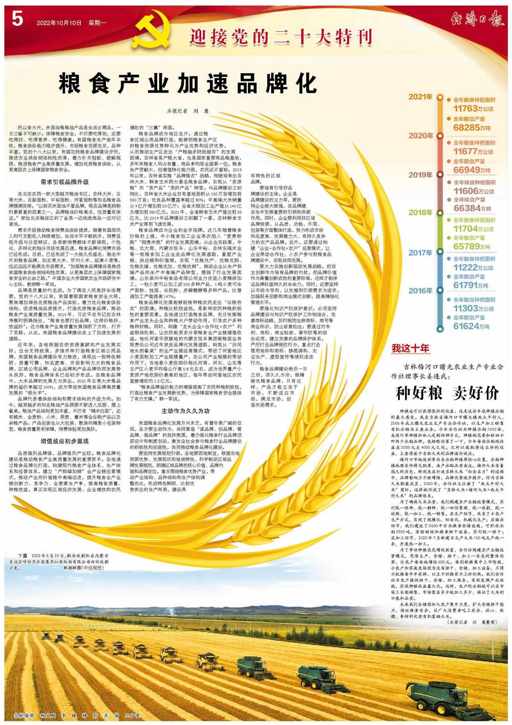 “粮食品牌溢价能力的增强提高了农民种粮积极性,打造出粮食产业发展新优势,为保障国家粮食安全提供了有力支撑。”韩一军说。