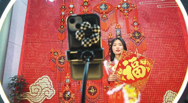 ▼山东省临沂市临沂商城节庆用品专业批发市场,商家在直播带货。近年来,我国电子商务发展势头强劲,助力畅通国内国际双循环。