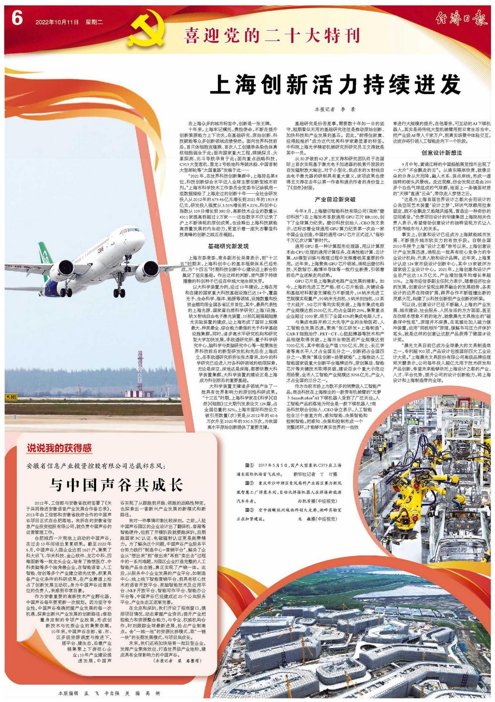与集成电路并称三大先导产业的生物医药、人工智能也发展迅速。聚焦“张江研发+上海制造”,CART细胞治疗、PET-CT、心脏起搏器等技术和产品相继取得突破,上海市生物医药产业规模达到7000亿元,其中制造业产值1700亿元,院士、长江学者等高水平人才占全国五分之一,创新药占全国四分之一;聚焦“算法创新+场景赋能”,上海推动人工智能国家级重大创新平台揭牌运作,原创算法、智能芯片等关键技术取得突破,建设百余个重大示范应用场景,全市人工智能产业规模达3056亿元,产业人才占全国的三分之一。
