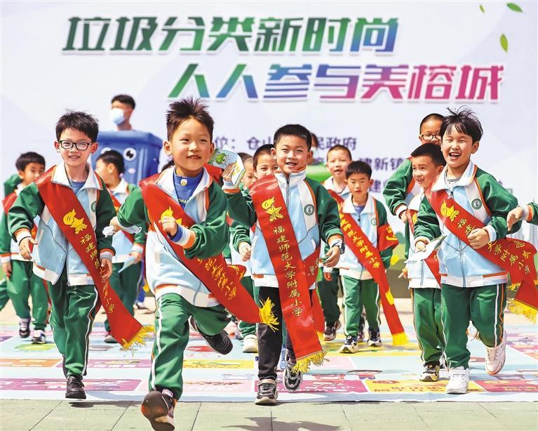 福建省福州市仓山区小学生积极参与垃圾分类的主题宣传活动。近年来,福州市持续推进生活垃圾分类体系建设,绿色低碳的生活方式渐入人心。谢贵明摄(中经视觉)