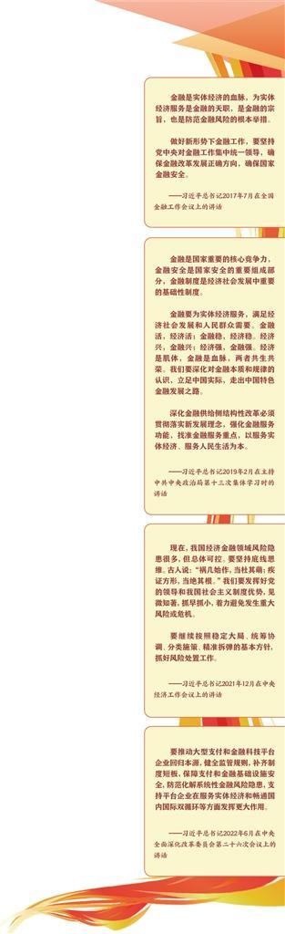 习近平总书记高度重视推进金融改革发展,强调“坚定深化金融改革”,要求在优化金融机构体系、完善现代金融企业制度、加强金融监管协调、健全风险监测预警和早期干预机制等方面下功夫。