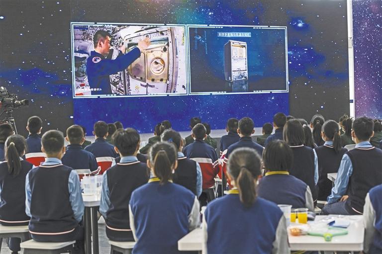 左图 学生在河南省科技馆收看“天宫课堂”第三课。新华社记者 徐嘉懿摄