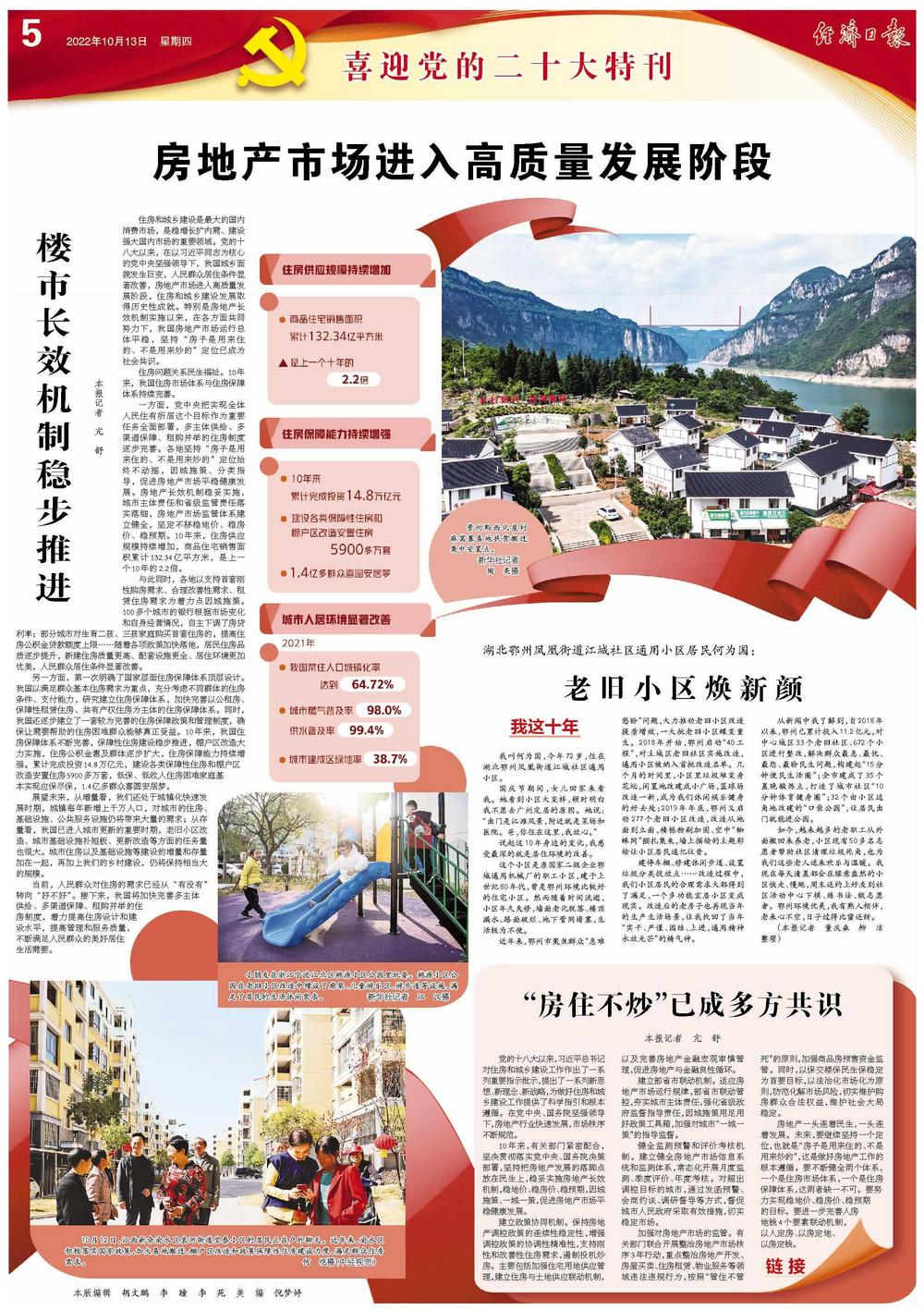 10年来,有关部门紧密配合,坚决贯彻落实党中央、国务院决策部署,坚持把房地产发展的落脚点放在民生上,稳妥实施房地产长效机制,稳地价、稳房价、稳预期,因城施策、一城一策,促进房地产市场平稳健康发展。
