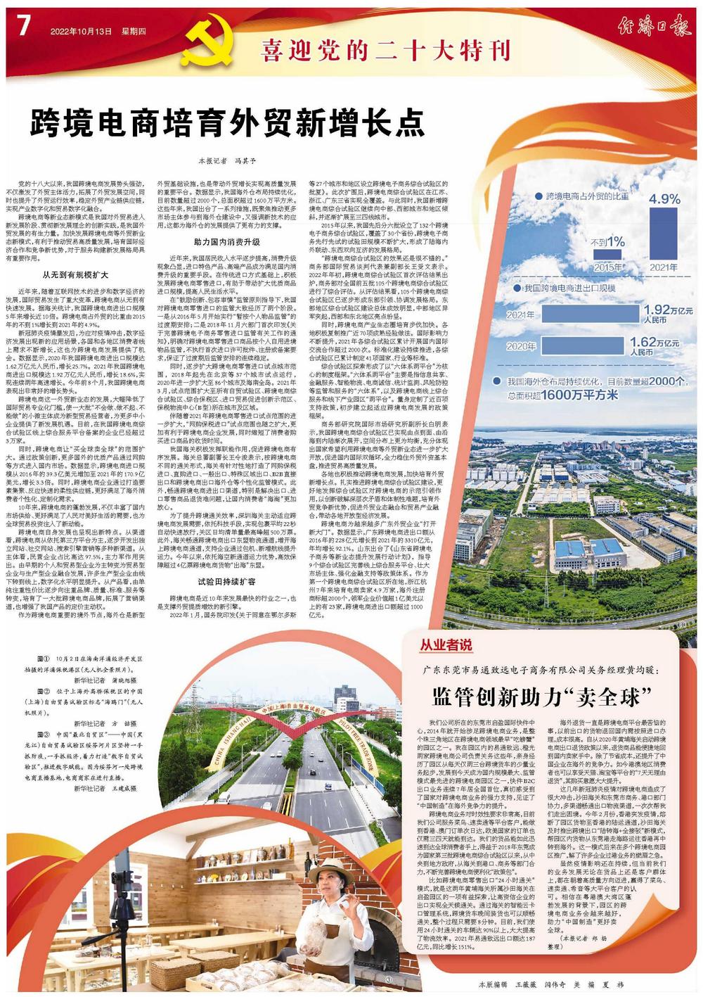 跨境电商为越来越多广东外贸企业“打开新大门”。数据显示,广东跨境电商进出口额从2016年的228亿元增长到2021年的3310亿元,年均增长92.1%。山东出台了《山东省跨境电子商务等新业态提升发展行动计划》,指导9个综合试验区完善线上综合服务平台、壮大市场主体、强化金融支持等政策体系。作为第一个跨境电商综合试验区所在地,浙江杭州7年来培育电商卖家4.9万家,海外注册商标超2000个,领军企业价值超1亿美元以上的有23家,跨境电商进出口额超过1000亿元。