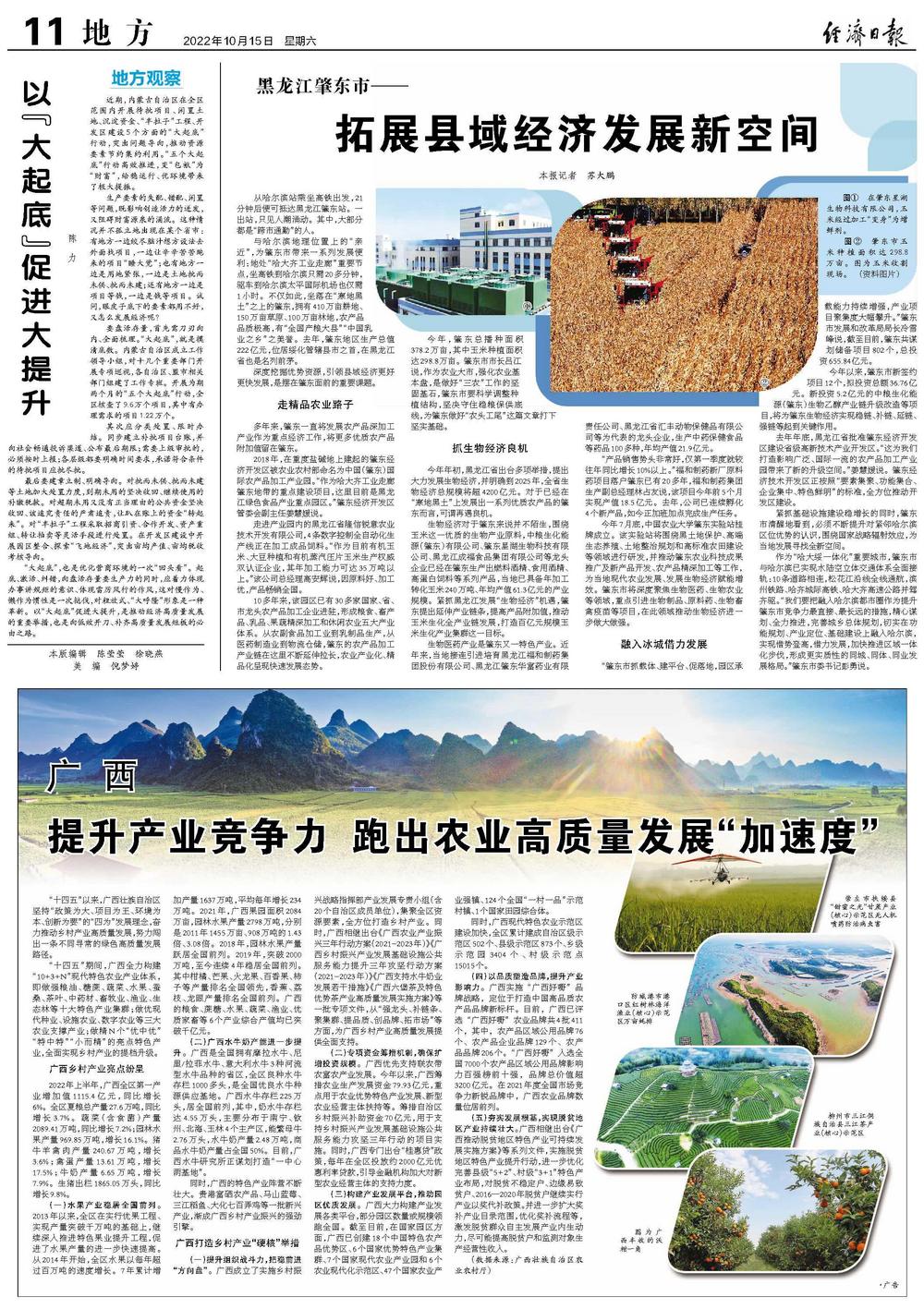 “十四五”以来,广西壮族自治区坚持“政策为大、项目为王、环境为本、创新为要”的“四为”发展理念,奋力推动乡村产业高质量发展,努力闯出一条不同寻常的绿色高质量发展路径。