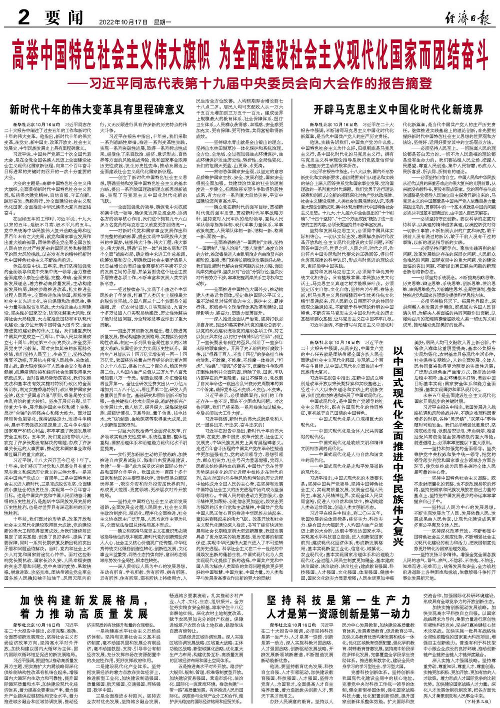 新华社北京10月16日电 习近平在二十大报告中强调,必须坚持科技是第一生产力、人才是第一资源、创新是第一动力,深入实施科教兴国战略、人才强国战略、创新驱动发展战略,开辟发展新领域新赛道,不断塑造发展新动能新优势。