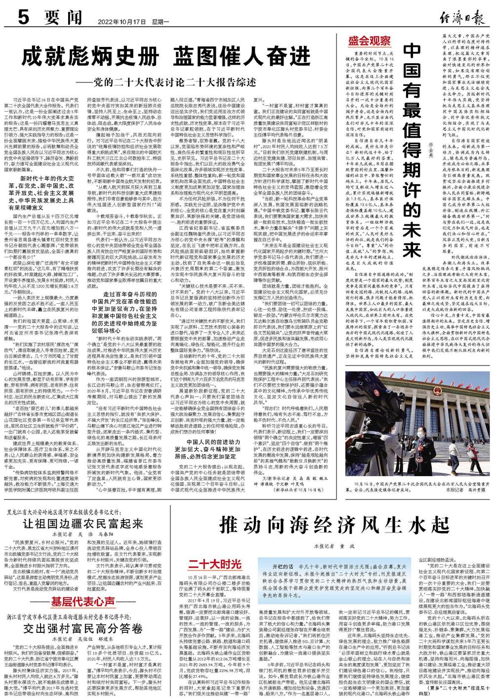 10月16日,中国共产党第二十次全国代表大会在北京人民大会堂隆重开幕。会后,代表接受媒体记者采访。本报记者 高兴贵摄
