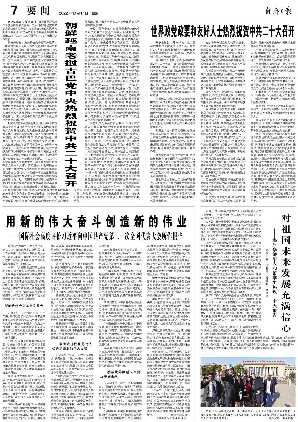 美国共产党联合主席西姆斯、康布隆等表示,十年来,中国在诸多领域取得极不平凡的成就,中共二十大将继续引领中国在社会主义道路上向前发展。
