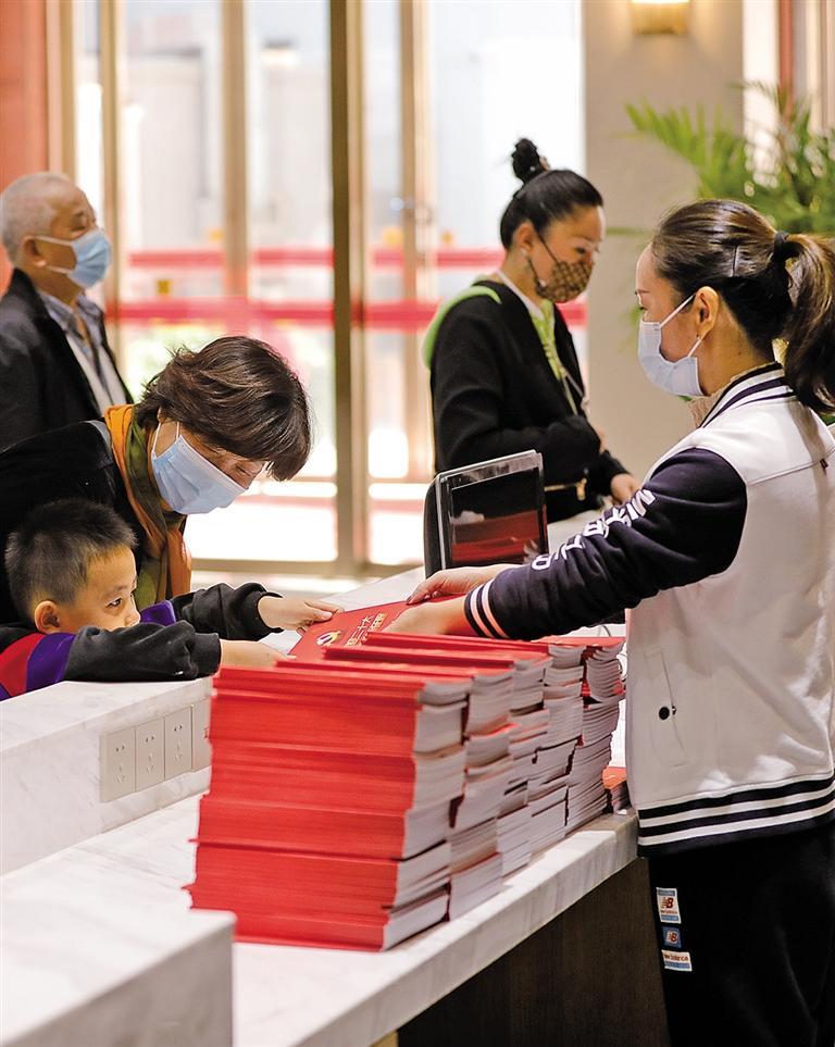 十月十七日,河北省保定市莲池区西高社区为居民免费发放党的二十大学习笔记本,号召全体党员群众认真学习党的二十大精神。王爱华摄(中经视觉)