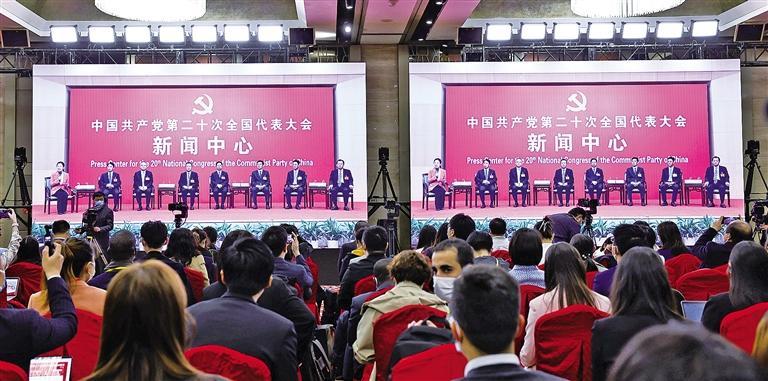 北京市委常委、秘书长赵磊说,北京代表团一致认为,党的二十大报告令人振奋,从中看到了一个欣欣向荣的祖国、一个风华正茂的党,看到了我们更加美好的未来。代表们纷纷表示,要在各自的岗位上努力拼搏、锐意进取,给党和人民交上一份更加满意的答卷。