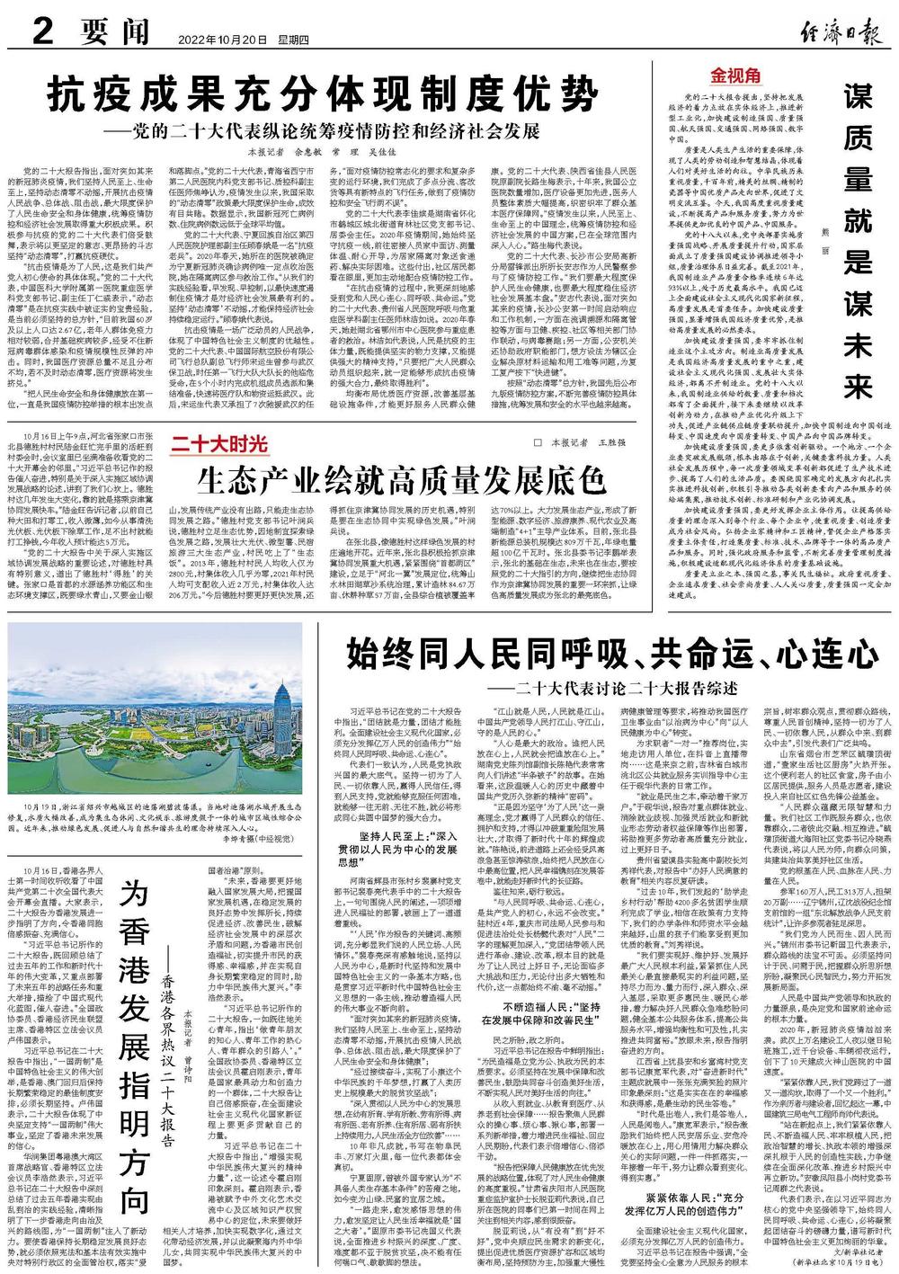 习近平总书记在二十大报告中指出,“一国两制”是中国特色社会主义的伟大创举,是香港、澳门回归后保持长期繁荣稳定的最佳制度安排,必须长期坚持。卢伟国表示,二十大报告体现了中央坚定支持“一国两制”伟大事业,坚定了香港未来发展的信心。