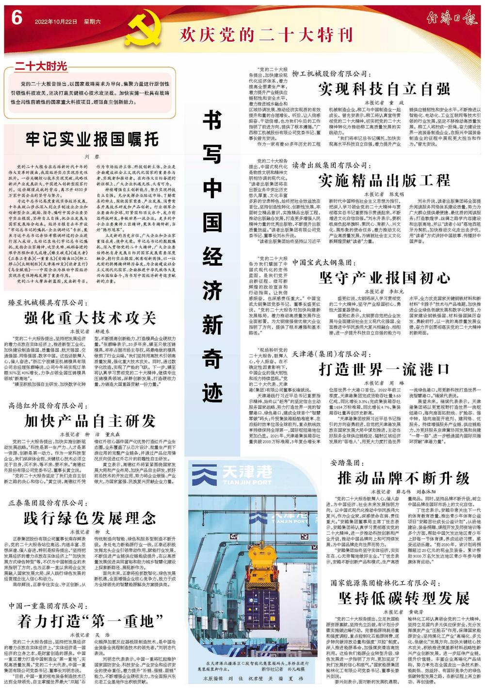 作为一家有着60多年历史的工程机械制造企业,柳工与中国制造业一起成长。曾光安表示,柳工将认真宣传贯彻党的二十大精神,切实把党的二十大精神转化为推动柳工高质量发展的实践动力。