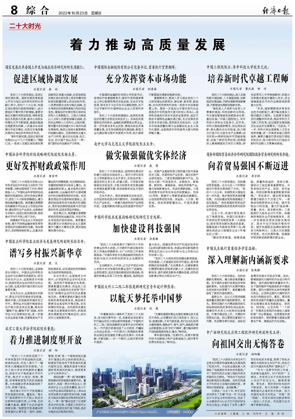 “党的二十大报告对实现2035年和本世纪中叶的奋斗目标作了科学部署,为新征程指明了方向,特别振奋人心。”中国社会科学院财经战略研究院副院长、研究员杨志勇表示,党的二十大报告明确提出,着力推动高质量发展。高质量发展需要在构建高水平社会主义市场经济体制、建设现代化产业体系、全面推进乡村振兴、促进区域协调发展、推进高水平对外开放上狠下功夫。