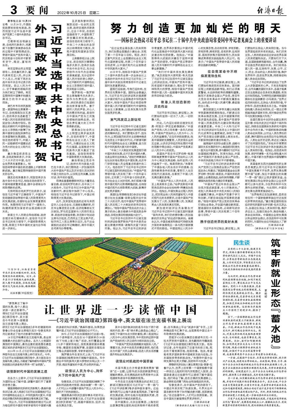 其中令他印象深刻的是书中如下两个领域的内容:第一是“绿水青山就是金山银山”,体现了中国对生态文明的重视;第二是坚持以人民为中心的发展思想,书中用实例证明中国共产党始终把人民立场作为根本政治立场。