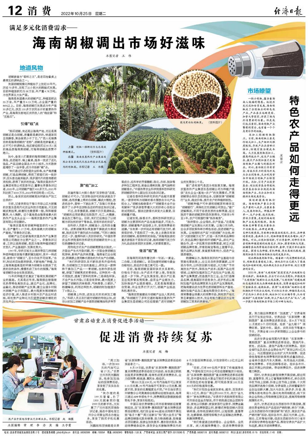 如今,备受人们喜爱的海南胡椒已走出海南岛,走进超市、端上餐桌,摇身一变成了送礼佳品,产品远销全国各大中小城市,为无数家庭增添了一丝辛香,成为市场新“椒”点。