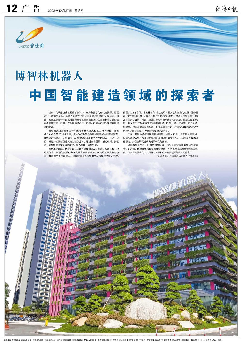 碧桂园集团全资子公司广东博智林机器人有限公司(简称“博智林”)成立于2018年7月,定位为行业领先的智能建造解决方案提供商,聚焦建筑机器人、BIM数字化、新型建筑工业化等产品的研发、生产与应用,打造并实践新型建筑施工组织方式。通过技术创新、模式创新,探索行业高质量可持续发展新路径,助力建筑业转型升级。