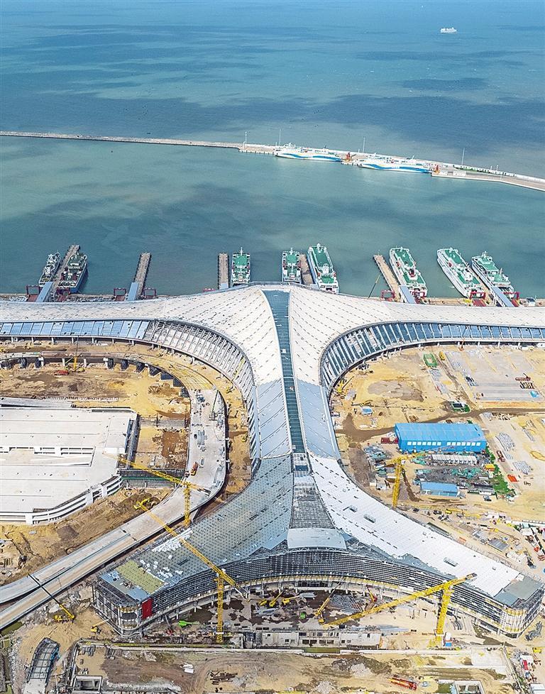 十月二十六日,海南省海口市新海滚装码头客运综合枢纽站项目现场,施工人员正在作业。该项目建成后将有效解决目前琼州海峡轮渡运输存在的短板,提升交通集散能力,保障琼州海峡大通道运输安全顺畅。张俊其摄(中经视觉)
