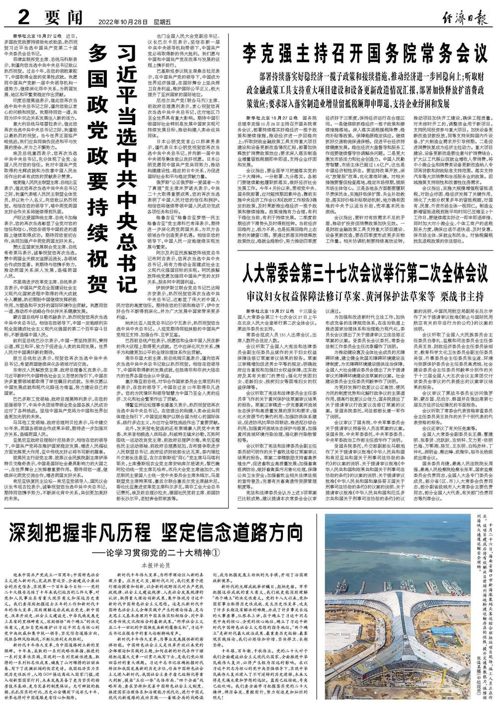 迎来中国共产党成立一百周年;中国特色社会主义进入新时代;完成脱贫攻坚、全面建成小康社会的历史任务,实现第一个百年奋斗目标……党的二十大报告总结了十年来我们经历的三件大事,对党和人民事业具有重大现实意义和深远历史意义。我们要深刻把握过去五年的工作和新时代十年的伟大变革,深刻理解这些成就在党史、新中国史、改革开放史、社会主义建设史、中华民族发展史上具有的里程碑意义,深刻领悟“两个确立”的决定性意义,更加自觉地维护以习近平同志为核心的党中央权威和集中统一领导,坚定信念道路方向,战胜各种风险挑战,不断从胜利走向胜利。