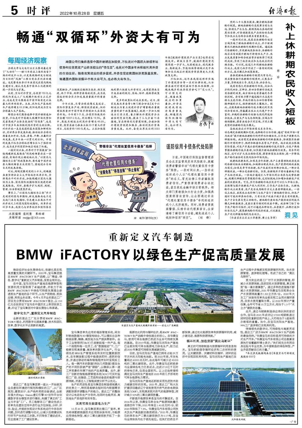 推动经济社会发展绿色化、低碳化是实现高质量发展的关键环节。2022年,宝马集团提出BMW iFACTORY生产战略,以“精益、绿色、数字化”重新定义汽车制造,受到全球关注。
