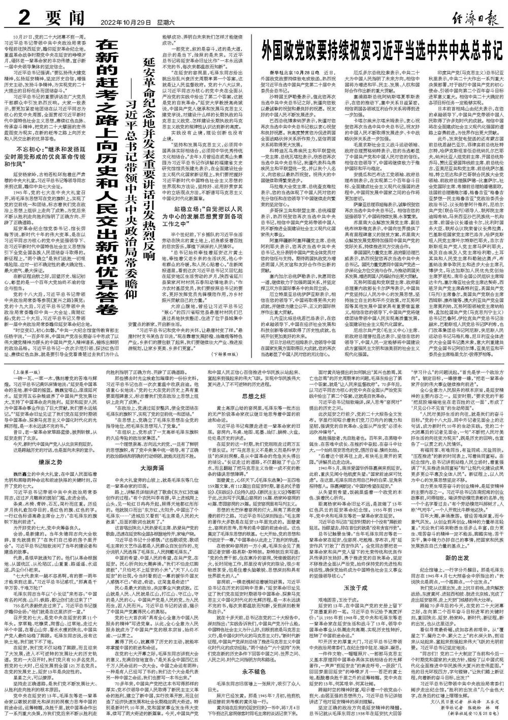 “同志们!党的二十大制定了当前和今后一个时期党和国家的大政方针,描绘了以中国式现代化全面推进中华民族伟大复兴的宏伟蓝图。”他的目光环视四方,字句铿锵,“让我们踏上新征程,向着新的奋斗目标,出发!”