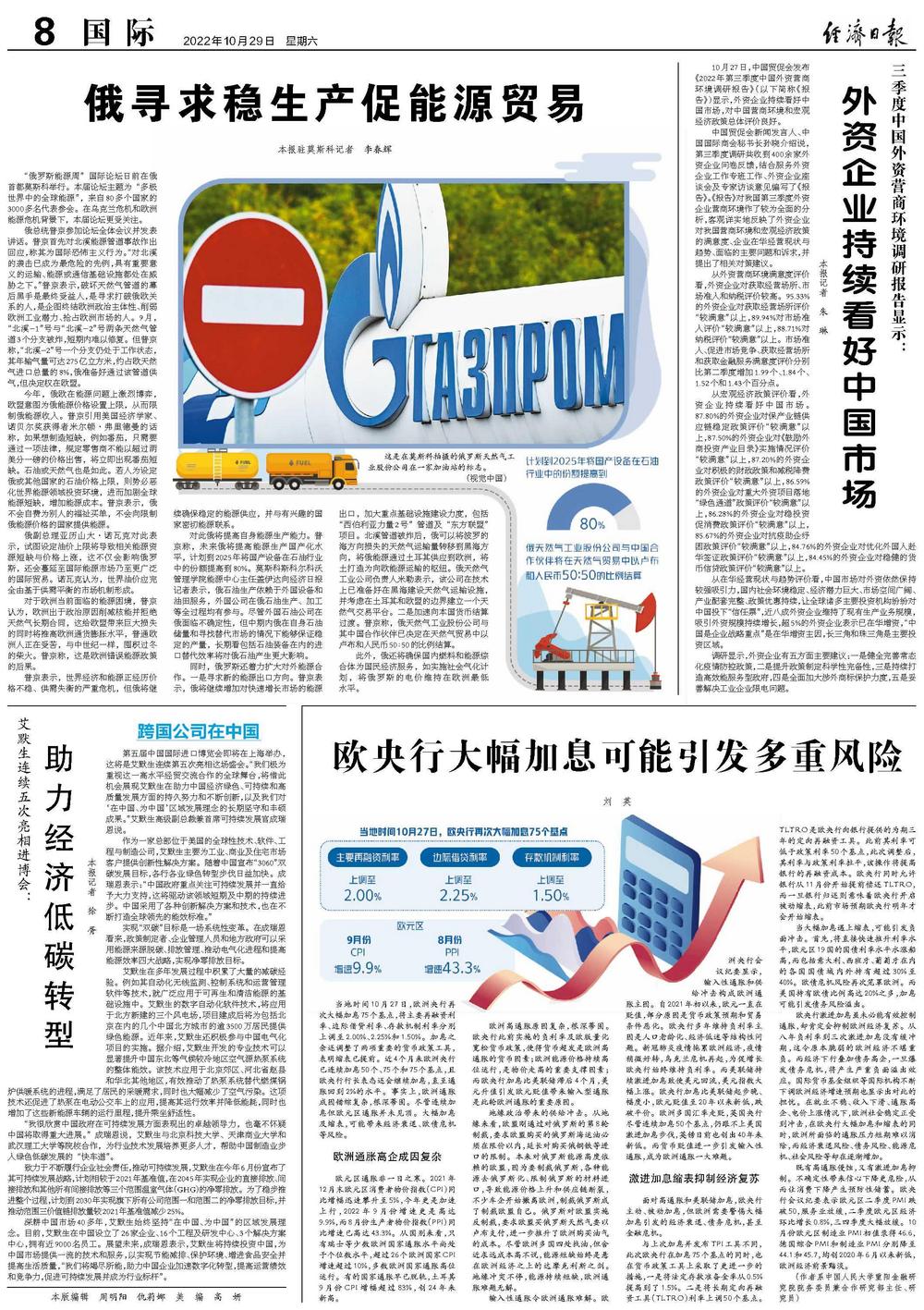 俄总统普京参加论坛全体会议并发表讲话。普京首先对北溪能源管道事故作出回应,称其为国际恐怖主义行为。“对北溪的袭击已成为最危险的先例,具有重要意义的运输、能源或通信基础设施都处在威胁之下。”普京表示,破坏天然气管道的幕后黑手是最终受益人,是寻求打破俄欧关系的人,是企图终结欧洲政治主体性、削弱欧洲工业潜力、抢占欧洲市场的人。9月,“北溪-1”号与“北溪-2”号两条天然气管道3个分支被炸,短期内难以修复。但普京称,“北溪-2”号一个分支仍处于工作状态,其年输气量可达275亿立方米,约占欧天然气进口总量的8%,俄准备好通过该管道供气,但决定权在欧盟。
