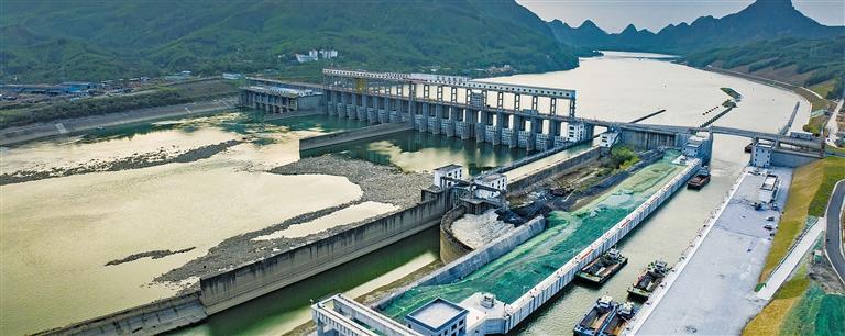 10月28日,船只从广西柳州市红花二线船闸通过。当日,全国水运行业首批、广西首个“品质工程”——红花二线船闸顺利实现试通航,标志着广西柳江水运通航能力从500吨级提升至3000吨级,为促进区域经济发展提供坚实的交通保障。