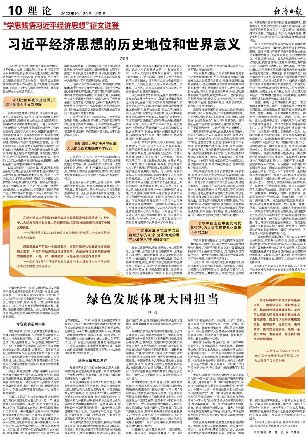习近平总书记指出:“世界上既不存在定于一尊的现代化模式,也不存在放之四海而皆准的现代化标准。”习近平经济思想立足中国国情,深刻回答了什么是中国式现代化、怎样建设中国式现代化这一重大时代课题,为推进现代化建设提供了科学指引,其影响是世界性的。