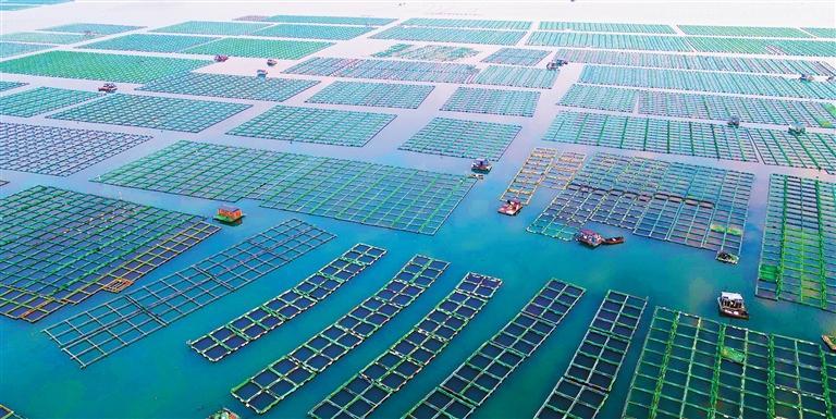 10月30日,产业工人驾驶着舢板在山东省荣成市桑沟湾海洋牧场作业。荣成市是国家级水产健康养殖和生态养殖示范区,全市海水养殖面积达56万亩,是我国重要的海珍品养殖基地。近年来,荣成市紧抓渔业特色和资源优势,促进海洋经济高质量发展。