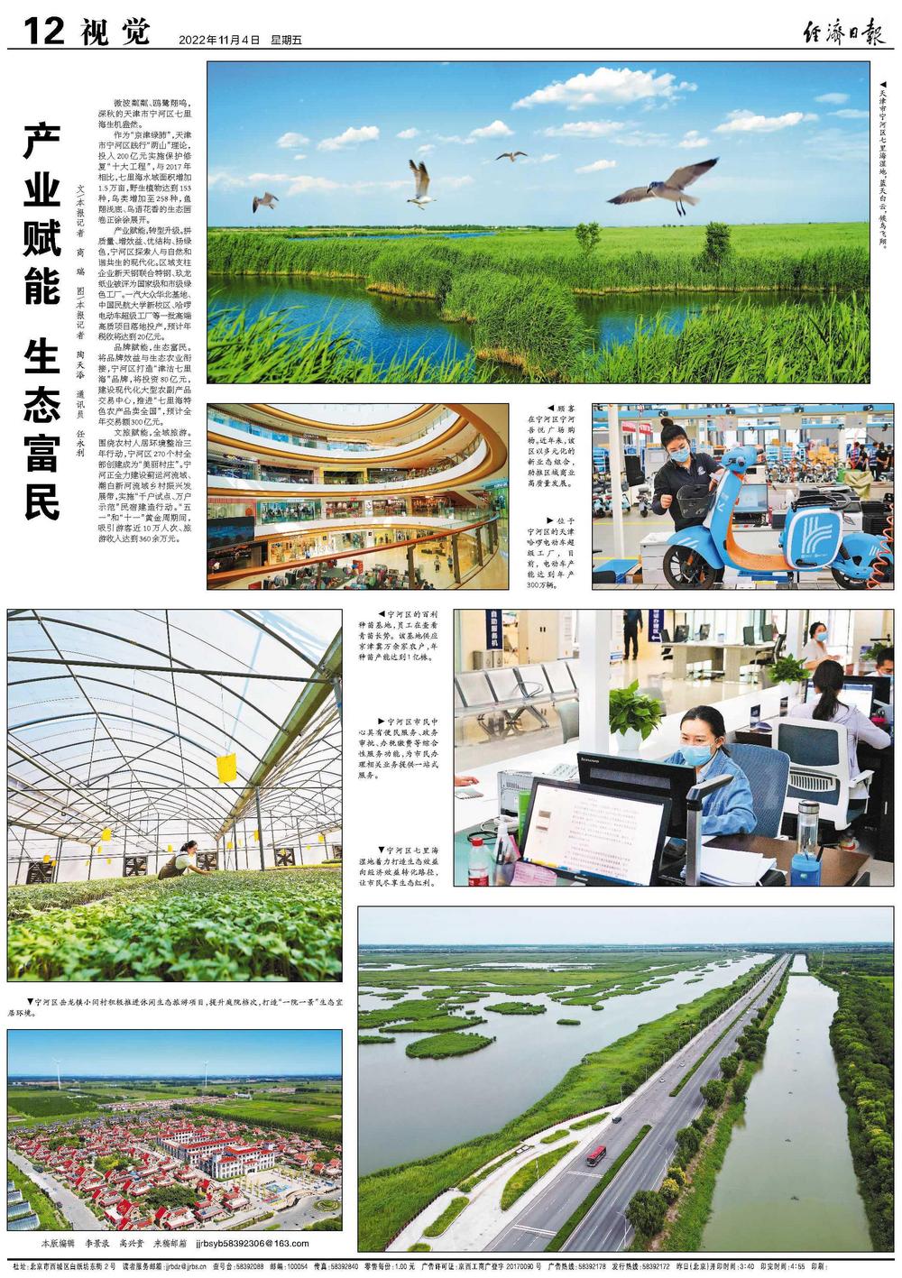 品牌赋能,生态富民。将品牌效益与生态农业衔接,宁河区打造“津沽七里海”品牌,将投资80亿元,建设现代化大型农副产品交易中心,推进“七里海特色农产品卖全国”,预计全年交易额300亿元。