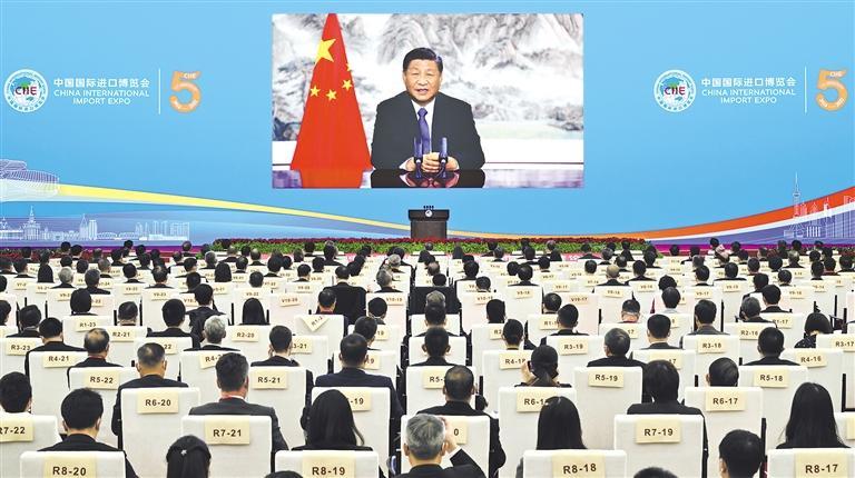 习近平指出,5年前,我宣布举办进博会,就是要扩大开放,让中国大市场成为世界大机遇。现在,进博会已经成为中国构建新发展格局的窗口、推动高水平开放的平台、全球共享的国际公共产品。