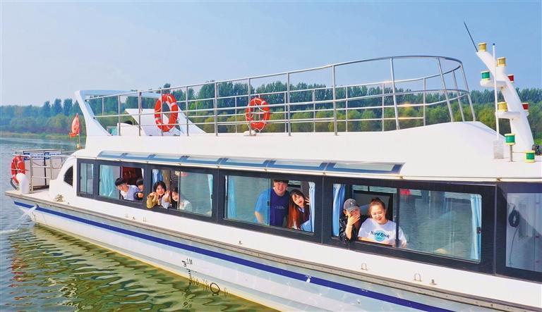 ④10月19日,游客在北运河(河北香河段)上乘坐游船赏景游玩。该县打出“组合拳”,着力提升运河生态景观。