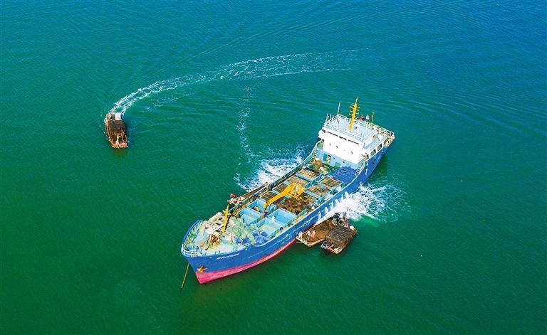 ⑤11月2日,在山东省荣成市爱伦湾海水养殖区,现场一派忙碌。荣成市和福建莆田等地合作开展鲍鱼“南北转场”、冬夏对调养殖。