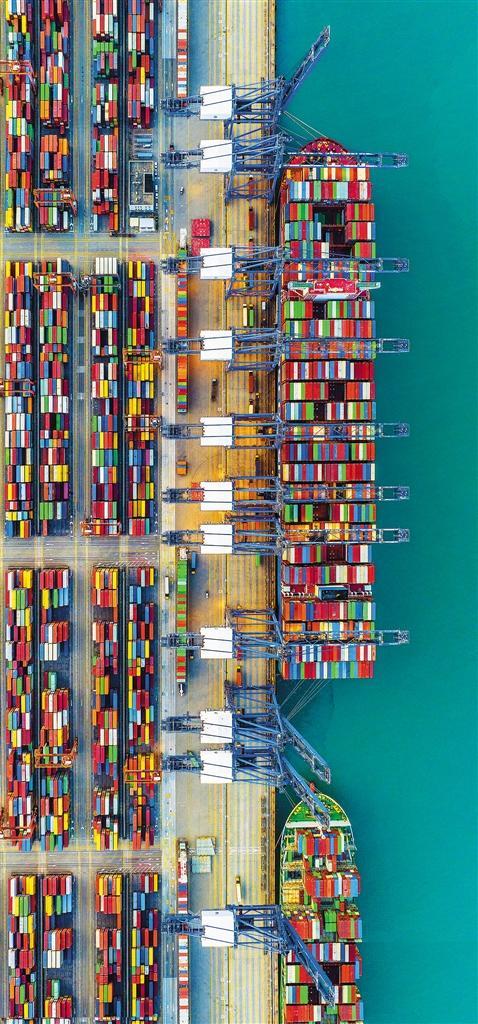 ②10月30日,繁忙的深圳盐田港作业码头。该港已开通国际班轮航线逾100条,是进口商品的集装箱运输枢纽港之一。黄广龄摄(中经视觉)