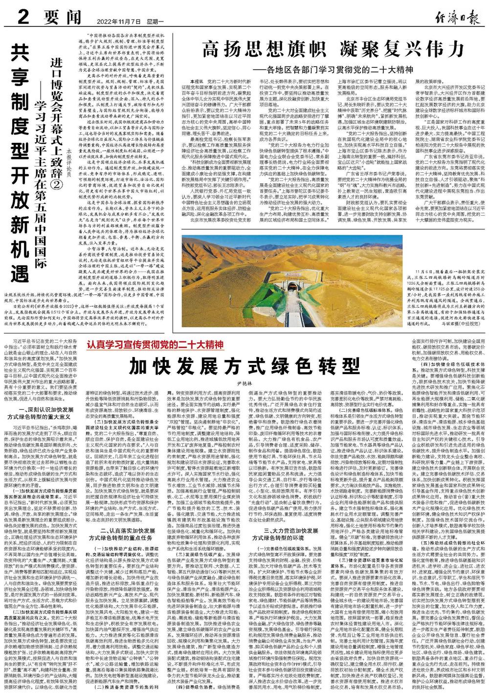 习近平总书记在党的二十大报告中指出:“必须牢固树立和践行绿水青山就是金山银山的理念,站在人与自然和谐共生的高度谋划发展。”加快发展方式绿色转型,是党中央立足全面建成社会主义现代化强国、实现第二个百年奋斗目标,以中国式现代化全面推进中华民族伟大复兴作出的重大战略部署,具有十分重要的意义。我们要坚决贯彻落实党的二十大部署和要求,推动绿色发展,促进人与自然和谐共生。