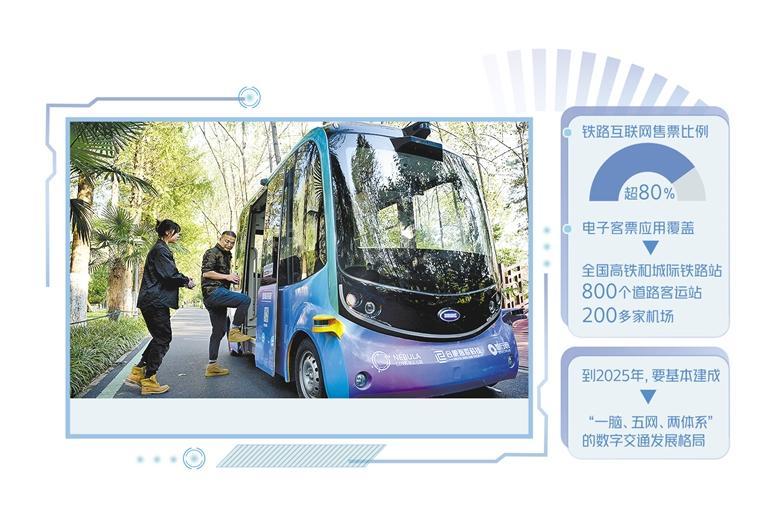 交通物理设施不断完善,让交通系统“肌肉”更强健,百姓出行有了更坚实的依托。而数字技术与交通融合产生的化学反应,则让交通系统“大脑”更智能,百姓能更便捷地享受出行服务——铁路互联网售票比例超过80%;电子客票应用覆盖全国高铁和城际铁路站、800个道路客运站和200多家机场;高速公路客车ETC使用率超过71%……