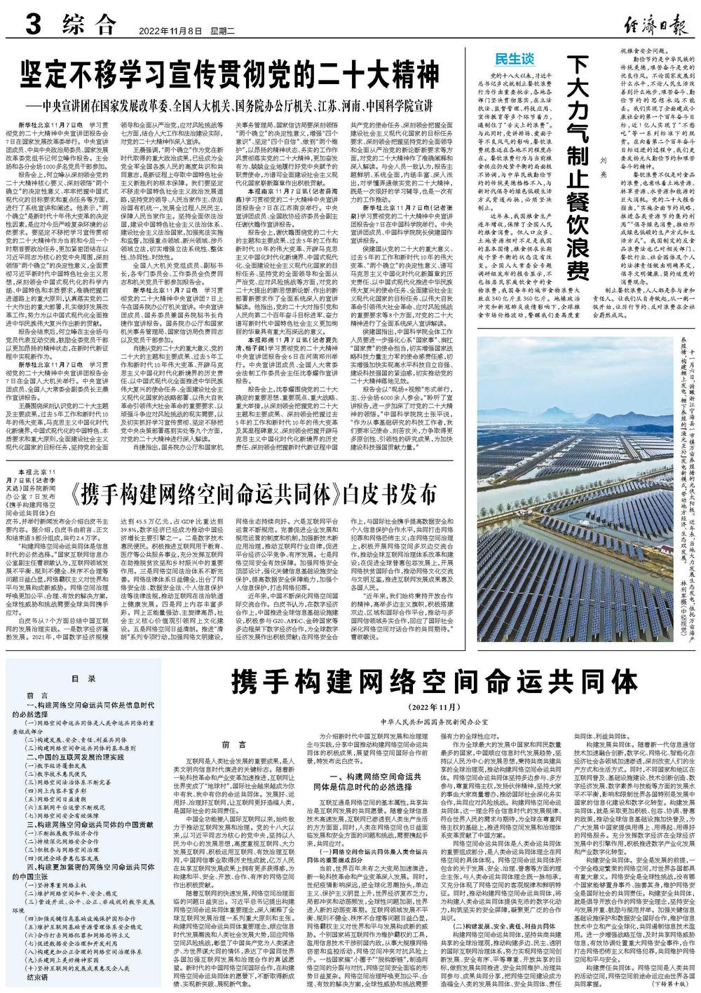 本报北京11月7日讯(记者李芃达)国务院新闻办公室7日发布《携手构建网络空间命运共同体》白皮书,并举行新闻发布会介绍白皮书主要内容。据介绍,白皮书由前言、正文和结束语3部分组成,共约2.4万字。