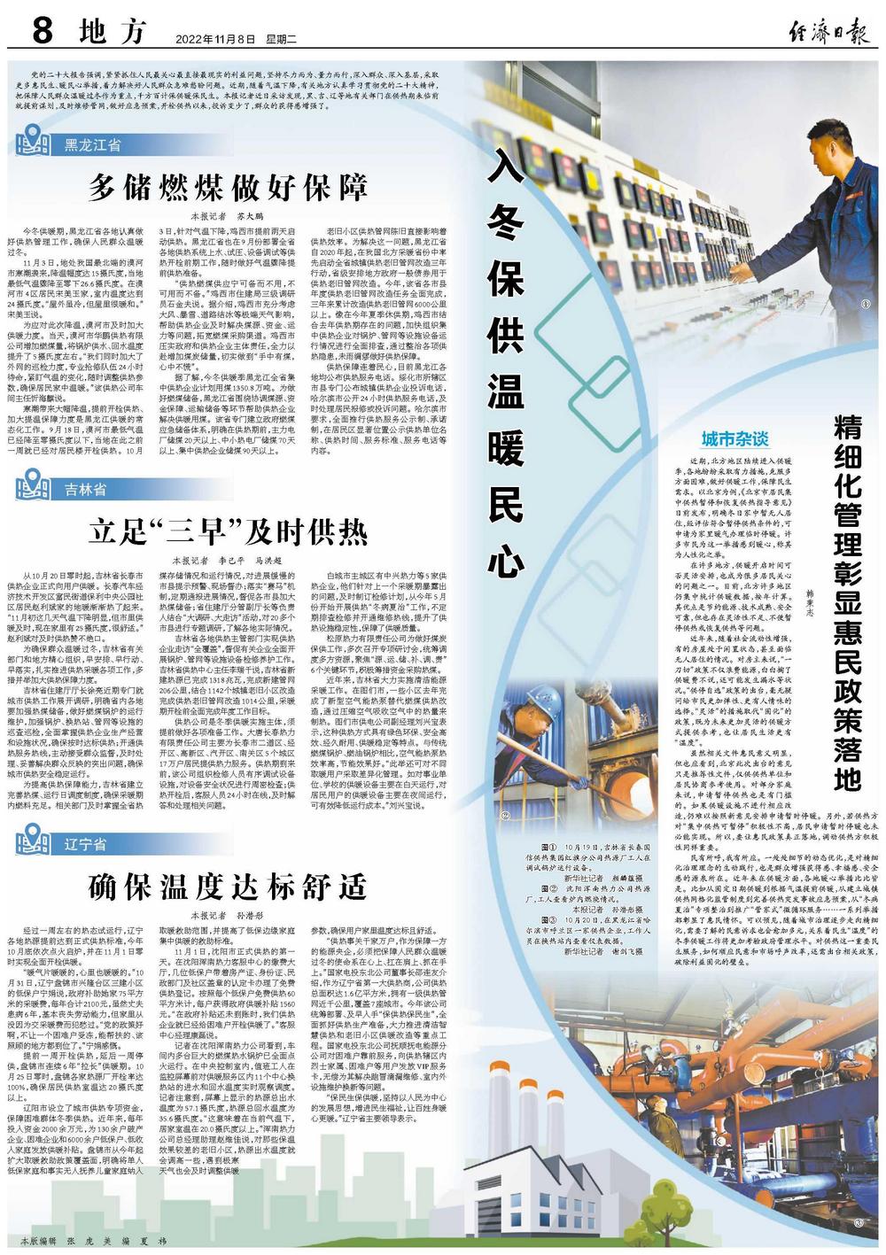 党的二十大报告强调,紧紧抓住人民最关心最直接最现实的利益问题,坚持尽力而为、量力而行,深入群众、深入基层,采取更多惠民生、暖民心举措,着力解决好人民群众急难愁盼问题。近期,随着气温下降,有关地方认真学习贯彻党的二十大精神,把保障人民群众温暖过冬作为重点,千方百计保供暖保民生。本报记者近日采访发现,黑、吉、辽等地有关部门在供热期来临前就提前谋划,及时维修管网,做好应急预案,开栓供热以来,投诉变少了,群众的获得感增强了。