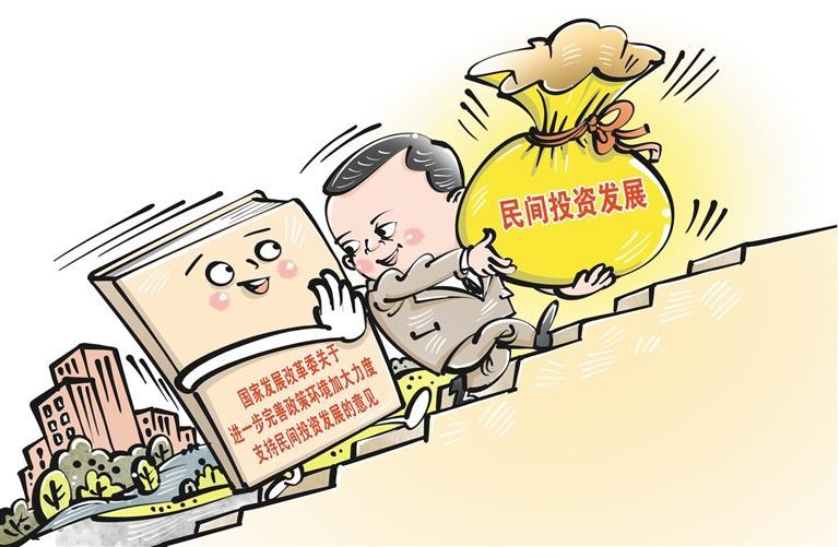 近日,国家发展改革委印发《关于进一步完善政策环境加大力度支持民间投资发展的意见》,明确了支持民间投资参与102项重大工程等项目建设、支持民间投资参与科技创新项目建设、支持平台经济规范健康持续发展等21条政策举措,进一步完善政策环境,加大力度支持民间投资发展。当前,民间投资占全社会投资一半以上,是社会投资的重要力量。必须坚持“两个毫不动摇”,加大政策支持力度,用市场办法、改革举措激发民间投资活力,进一步调动各方投资积极性、稳定市场预期、增加就业岗位,促进经济高质量发展。(时 锋)