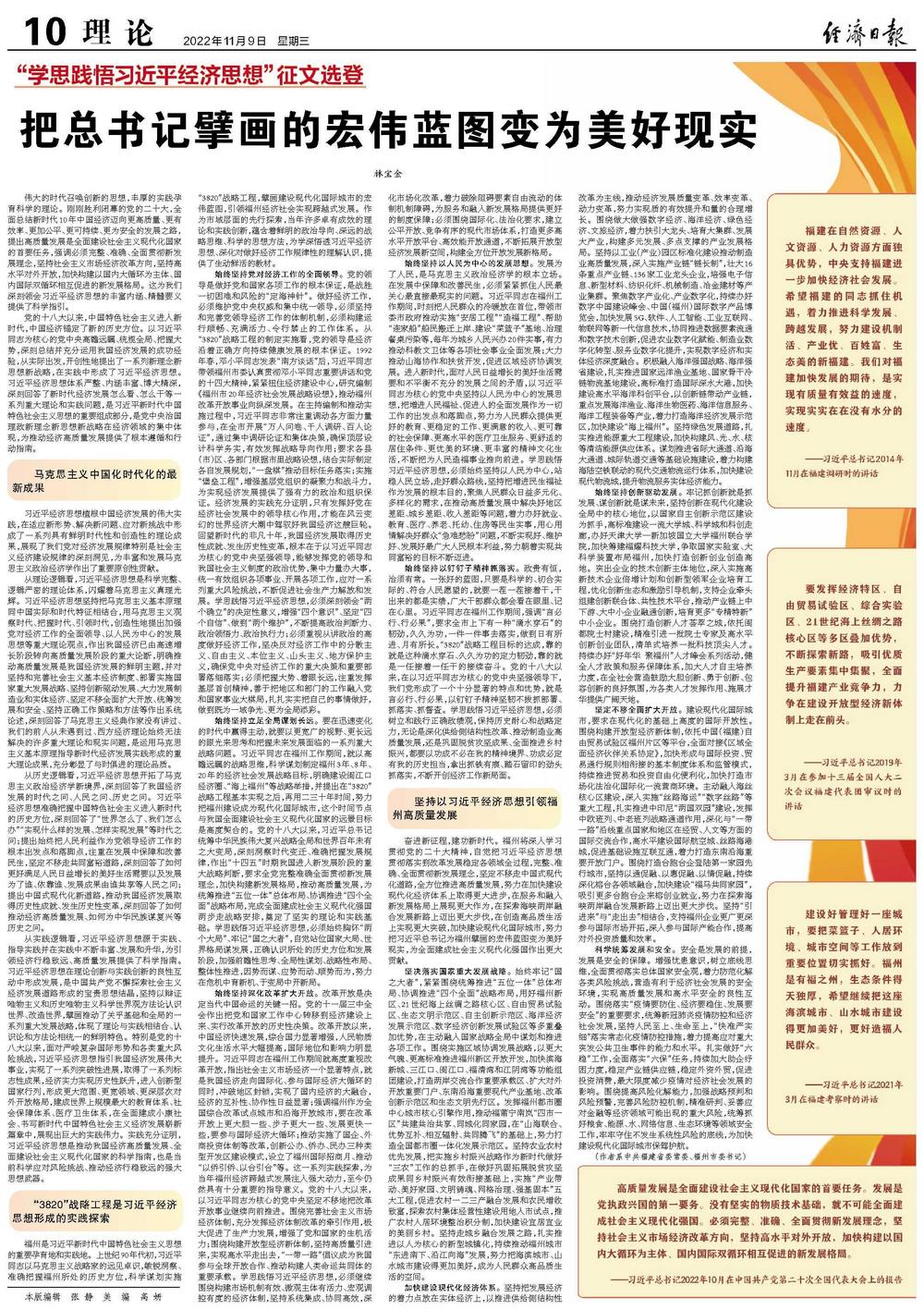 坚持以习近平经济思想引领福州高质量发展