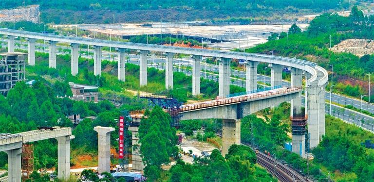 11月8日,广东清远磁浮旅游专线长隆特大桥跨京广铁路连续梁成功转体,标志着该项目主体工程全线贯通,为联调联试奠定了基础。项目建成后,将对助力清远加速融入“轨道上的大湾区”具有积极意义。金 伟摄(中经视觉)