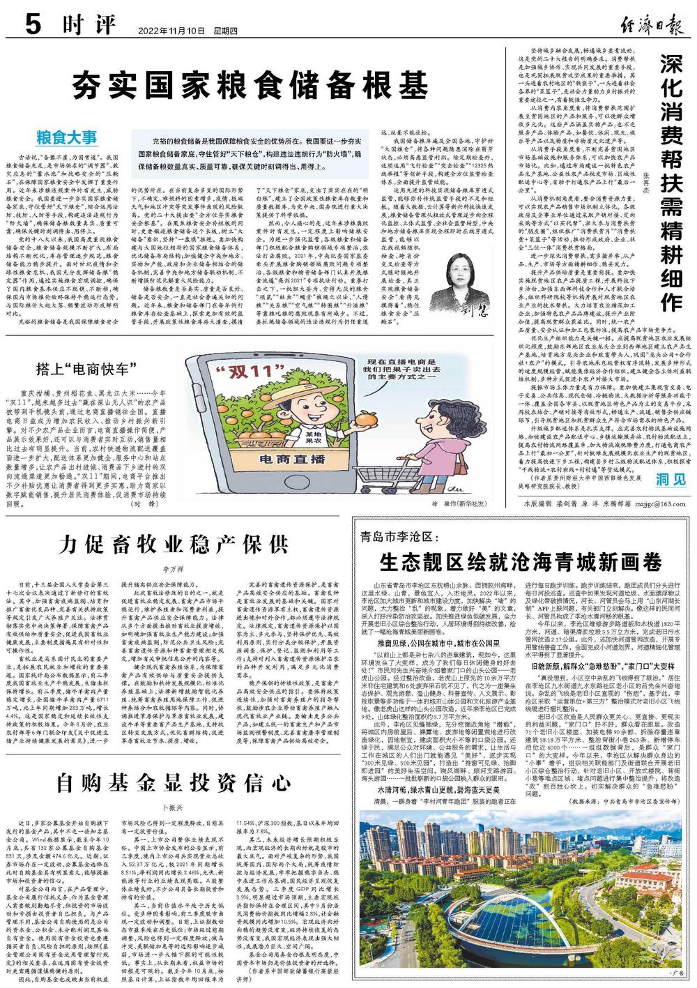充裕的粮食储备是我国保障粮食安全的优势所在。在当前复杂多变的国际形势下,不确定、难预料的因素增多,疫情、极端天气和地区冲突等突发事件出现的风险较高。党的二十大提出要“全方位夯实粮食安全根基”。在聚焦粮食安全补短板的同时,更要锻造粮食储备这个长板,树立“大储备”意识,坚持“一盘棋”推进。要加快构建与大国地位相符的国家粮食储备体系,优化储备布局结构;加快健全中央和地方、实物和产能、政府和企业储备相结合的储备机制,完善中央和地方储备联动机制,不断增强防范化解重大风险能力。