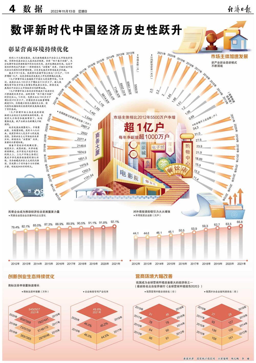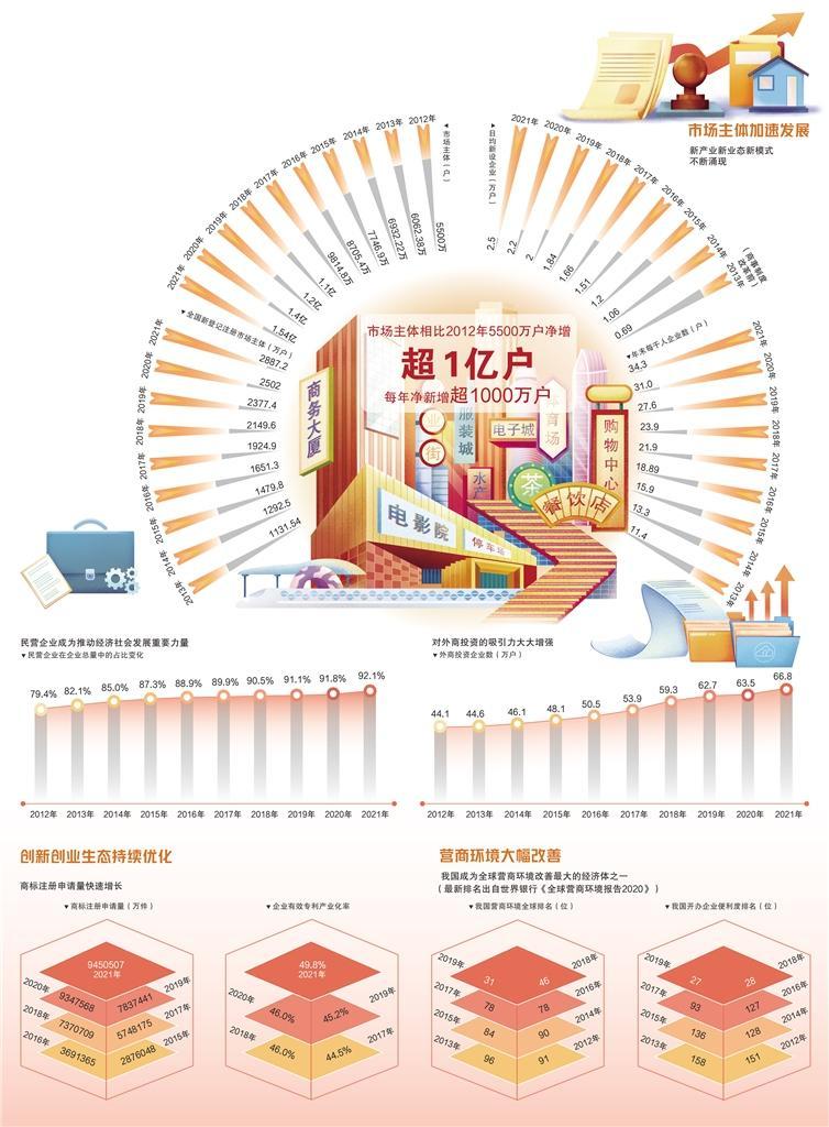 截至今年9月底,我国登记在册市场主体达1.64亿户,10年净增超1亿户,这是全球经济发展史上罕见的跨越式发展。