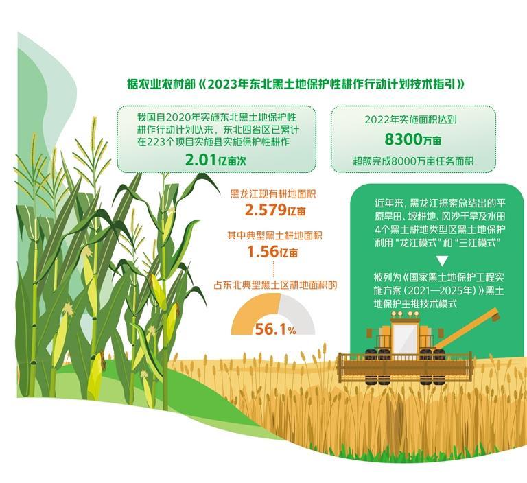 黑土地保护性耕作模式正在东北黑土区得到普遍推广。据农业农村部近日发布的《2023年东北黑土地保护性耕作行动计划技术指引》,我国自2020年实施东北黑土地保护性耕作行动计划以来,东北四省区已累计在223个项目实施县实施保护性耕作2.01亿亩次,2022年实施面积达到8300万亩,超额完成8000万亩任务面积。同期,共建设了56个整体推进县和712个县乡级高标准应用基地,25个县实施面积超过100万亩,四省区以点带面、梯次铺开的态势已经形成。