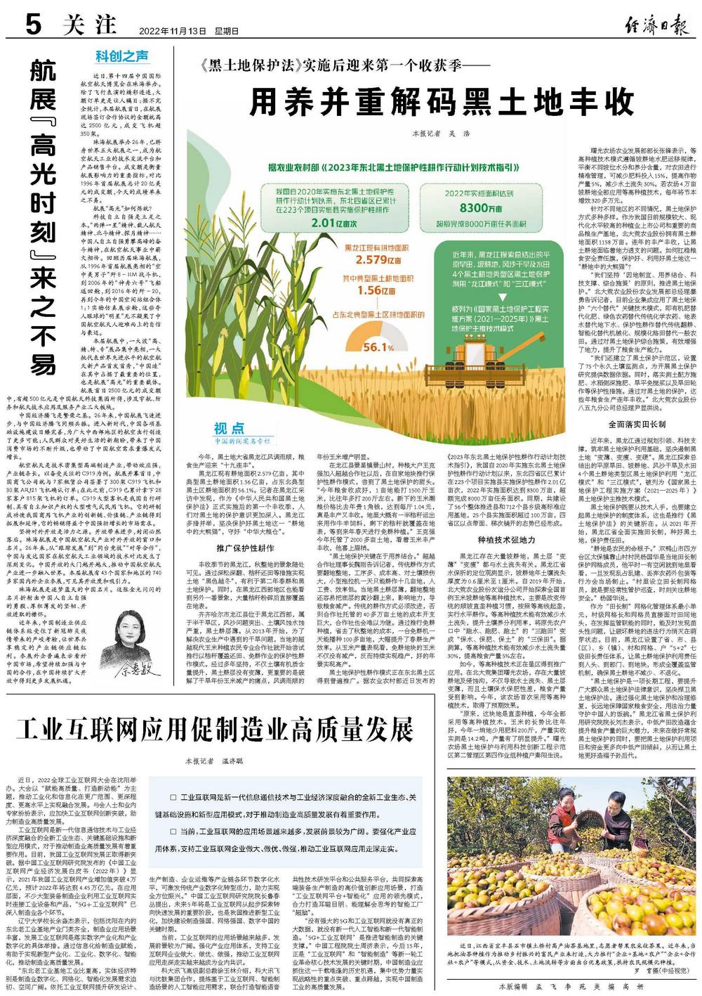 “黑土地保护是一项长期工程,要提升广大群众黑土地保护法律意识,坚决捍卫黑土地保护法。通过强化黑土地保护和治理修复,长远地保障国家粮食安全,用法治力量守护中国人的饭碗。”黑龙江省黑土保护利用研究院院长刘杰表示,中低产田改造蕴含提升粮食产量的巨大潜力,未来在做好常规黑土地保护的同时,要把黑土地保护利用项目和资金更多向中低产田倾斜,从而让黑土地更好造福子孙后代。