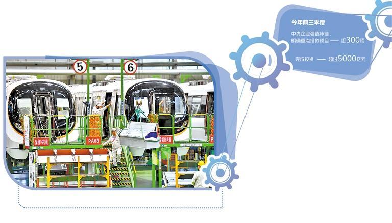 今年以来,中央企业以有效投资加快产业链强基础、补短板,保障产业链安全稳定发展。统计显示,今年前三季度,中央企业围绕新一代信息技术、高端装备制造、粮食安全等产业链领域的卡点堵点,明确重点投资项目近300项,完成投资超过5000亿元。