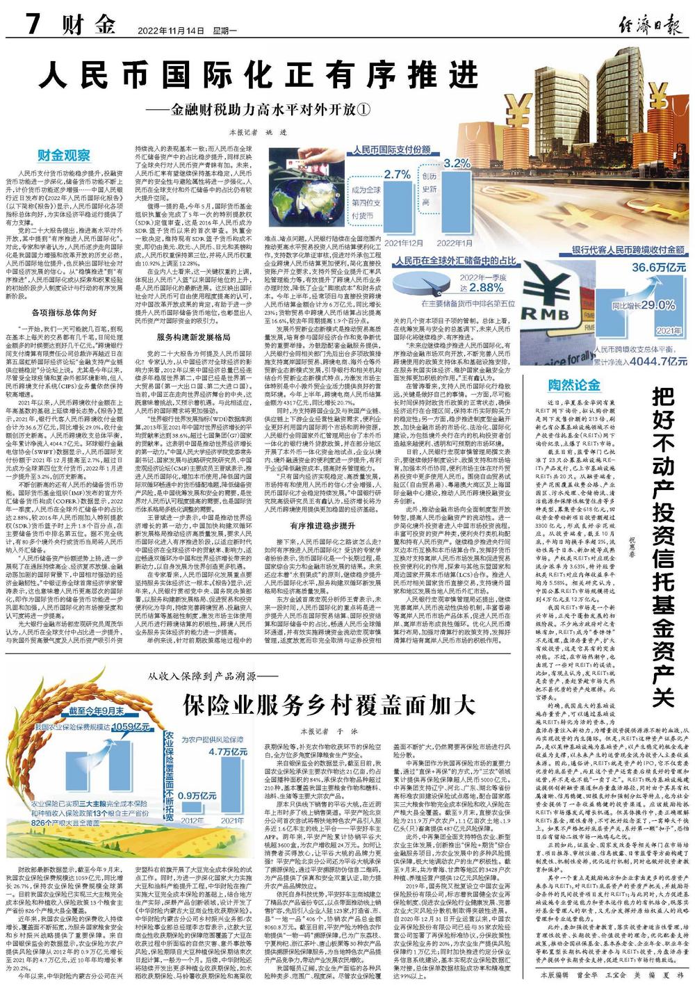 党的二十大报告提出,推进高水平对外开放,其中提到“有序推进人民币国际化”。对此,专家和学者认为,人民币逐步走向国际化是我国国力增强和改革开放的历史必然,人民币国际地位提升,也反映出国际社会对中国经济发展的信心。从“稳慎推进”到“有序推进”,人民币国际化或从探索和积累经验的初始阶段步入制度设计与行动的有序发展新阶段。