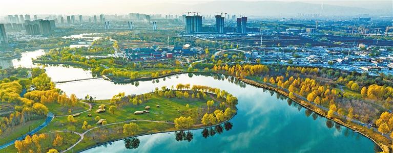 11月13日,在山西省临汾市涝洰河生态公园拍摄的初冬景色。近年来,临汾市围绕河道治理,建设涝洰河生态公园,生态环境明显改善,昔日荒芜的乱河滩,如今成为市民休闲娱乐的场所。王稳锁摄(中经视觉)