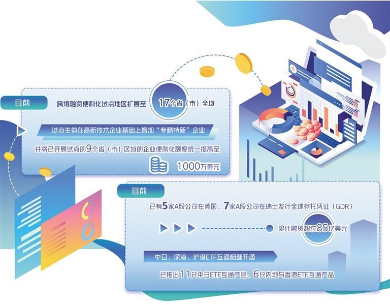 优化交易日历安排,将不可交易天数减少一半;扩大交易标的范围,先后将不同投票权架构公司、尚未盈利生物科技公司、科创板股票和ETF纳入标的范围。截至今年9月底,沪深股通资金合计净流入1.68万亿元。不断拓宽境外上市融资渠道,优化沪伦通机制,境外拓展到瑞士、德国等欧洲市场,境内拓展至深交所。已有5家A股公司在英国、7家A股公司在瑞士发行全球存托凭证(GDR),累计融资超过85亿美元。境外发行GDR将有力促进A股上市公司的国际化经营。